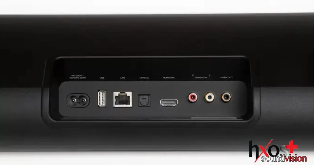 Οι διαθέσιμες συνδέσεις περιλαμβάνουν HDMI eARC, οπτική και RCA είσοδο, AirPlay 2 και αμφίδρομο Bluetooth.