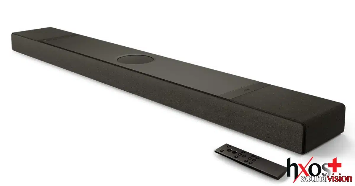 O σχεδιασμός της ηχομπάρας είναι εμπνευσμένος από συμμετρικές γεωμετρίες, ενώ οι διαστάσεις είναι κατάλληλες για τηλεοράσεις από 55 ιντσών και άνω. Κυκλοφορεί σε Silver Gray και Slate Black, ενώ μπροστά είναι καλυμμένη με ύφασμα και το επάνω μέρος με αλουμίνιο.