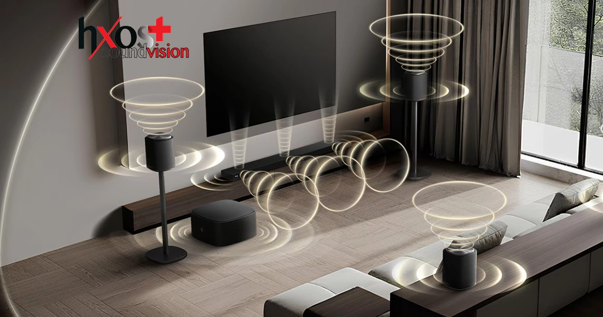 H H7 χρησιμοποιεί σύστημα AI upmixing με Clear Voice Pro+ για τα κανάλια και λειτουργία AI Room Calibration Pro για να προσαρμόζει τον ήχο στις ιδιαιτερότητες του χώρου.
