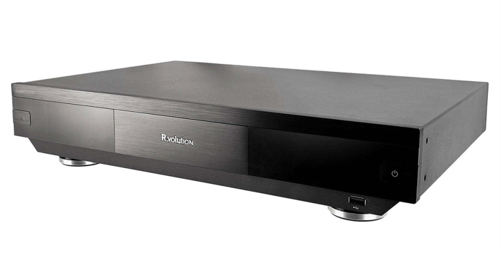 Η R_volution δεν σχεδίασε ένα νέο player από το μηδέν. Αντίθετα, διατήρησε ό,τι η Sony κάνει καλά. Τα εξαιρετικά ηλεκτρονικά του, το εύκολο και οικείο user interface (UI), τις αδειοδοτήσεις και αντικατέστησε μόνο το αδύνατο σημείο. Την τροφοδοσία. Το αποτέλεσμα είναι ένα μεταλλικό σασί διαστάσεων 430 x 72 x 282 χλστ., με στιβαρά πόδια στήριξης για τοποθέτηση σε έπιπλο ή ειδικά χερούλια rack για ένταξη σε ικρίωμα.