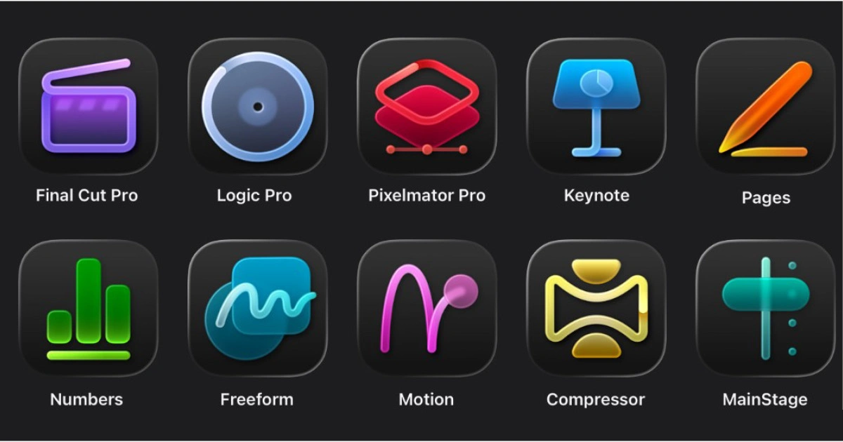Το Apple Creator Studio περιλαμβάνει τα προγράμματα Final Cut Pro, Motion και Compressor για την παραγωγή βίντεο, τα Logic Pro και MainStage για την παραγωγή μουσικής, το Pixelmator Pro για επεξεργασία εικόνας, καθώς και τα Keynote, Pages, Numbers και Freeboard.