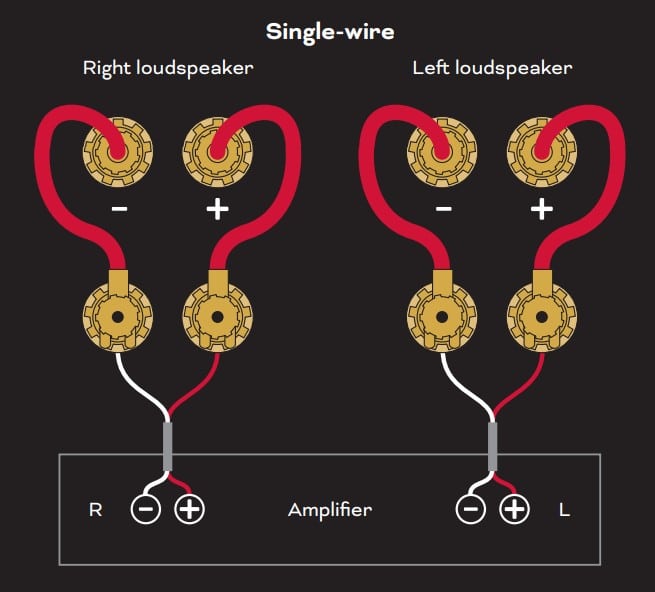 Σε ένα συμβατικό ηχείο που διαθέτει ένα μόνο ζεύγος ακροδεκτών (θετικό και αρνητικό) το σήμα από τον ενισχυτή οδηγείται απευθείας στο εσωτερικό φίλτρο (crossover), το οποίο αναλαμβάνει να διαχωρίσει τις συχνότητες: χαμηλές προς τη μονάδα μπάσου και υψηλές προς το τουίτερ. Στην περίπτωση αυτή, απαιτείται ένα απλό καλώδιο ηχείου για την σύνδεση.