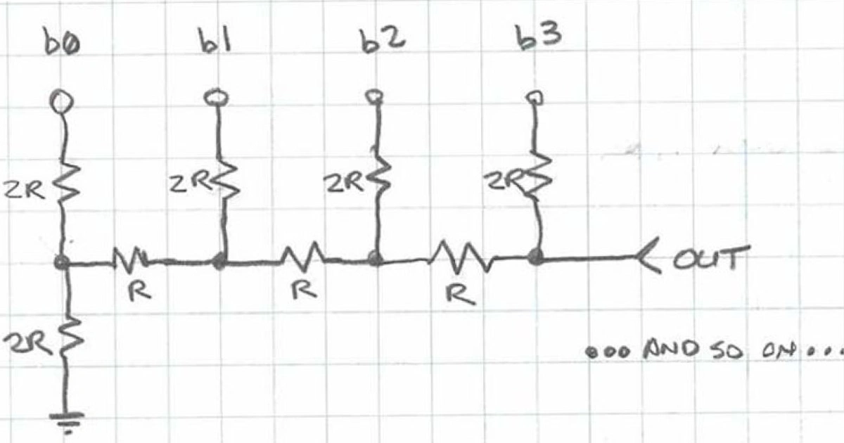 Κάθε bit δυαδικών δεδομένων αντιστοιχεί σε έναν κλάδο στο δίκτυο αντιστάσεων. Όταν το bit είναι «1», ο αντίστοιχος κλάδος άγει, δημιουργώντας την αντίστοιχη αναλογική ποσότητα μέσω διαίρεσης τάσης, η οποία στη συνέχεια υπερτίθεται για να σχηματίσει ένα πλήρες αναλογικό σήμα.