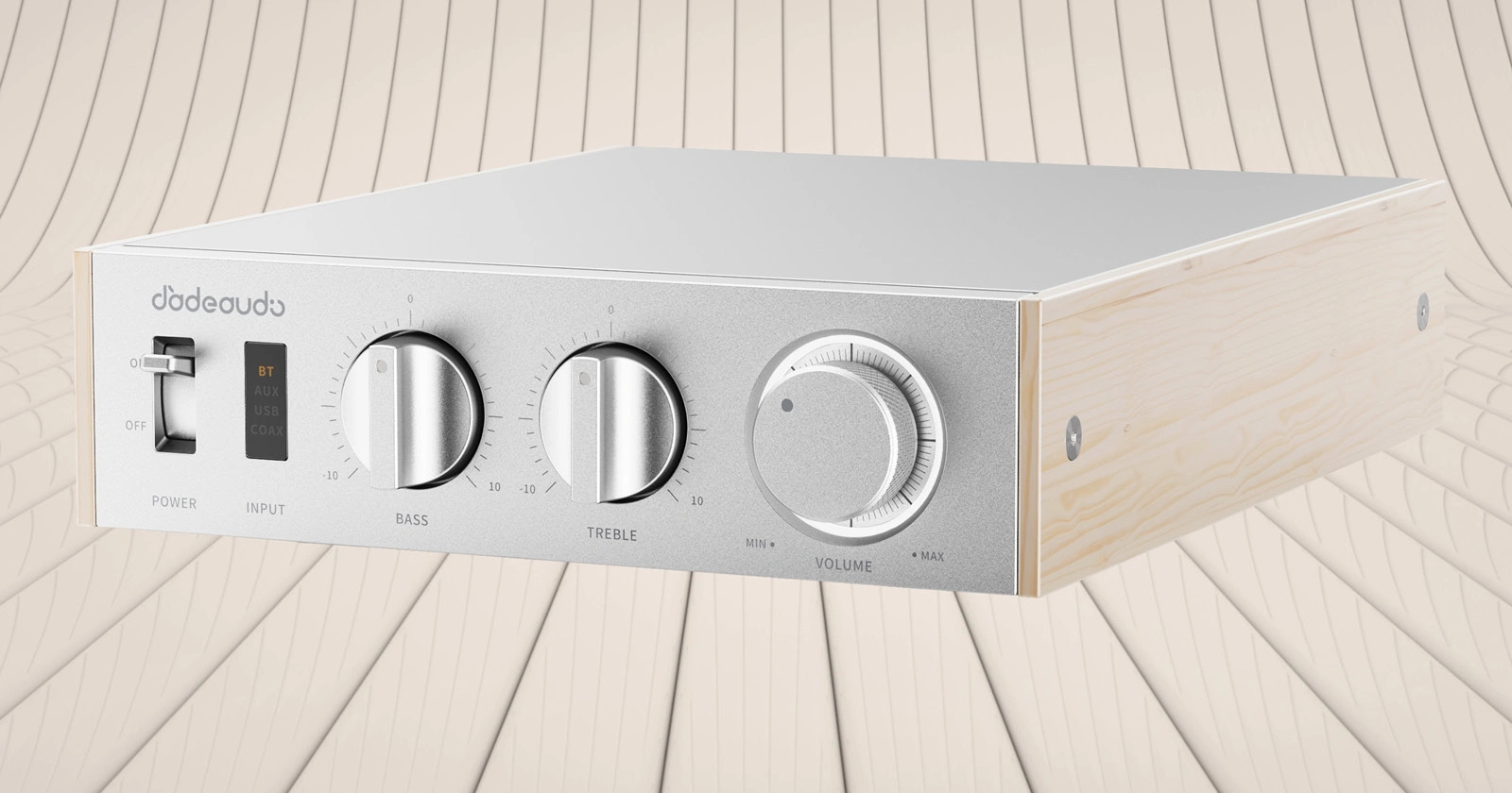 Η αισθητική του συνδυάζει μέταλλο στην πρόσοψη και στο επάνω μέρος και ξύλινα πλαϊνά σε ένα ρετρό design, ενώ το τροφοδοτικό του είναι εξωτερικό (48V/5A) και περιλαμβάνεται στην συσκευασία.