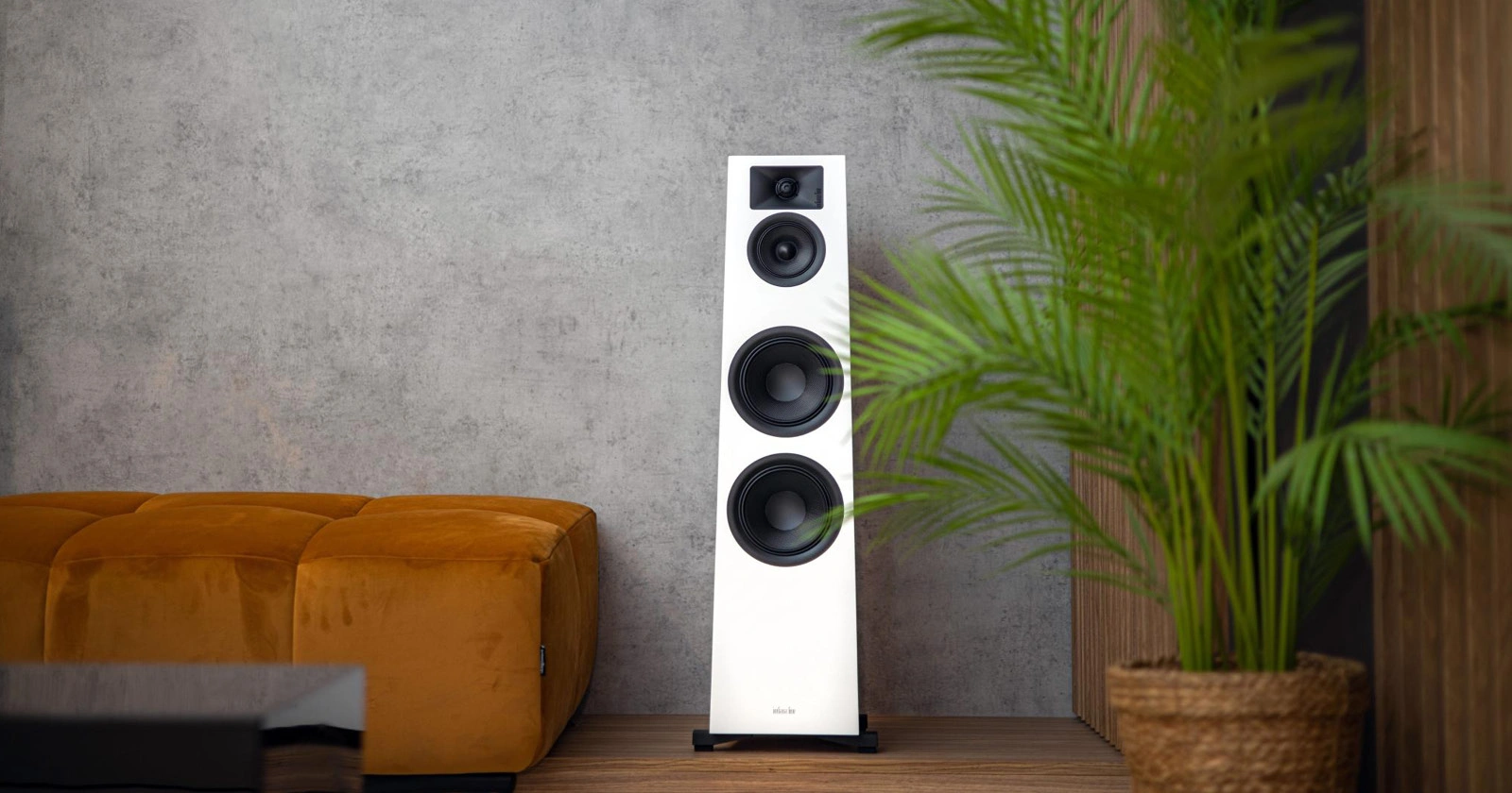 Η εξωτερική επιφάνεια με πολλαπλές στρώσεις λάκας δίνει premium εμφάνιση και αυξημένη αντοχή. Πρόκειται για ένα τρίδρομο ηχείο με δύο γούφερ 17,5 εκ. ένα μιντρέιντζ 12 εκ. και ένα τουίτερ 28 χλστ.