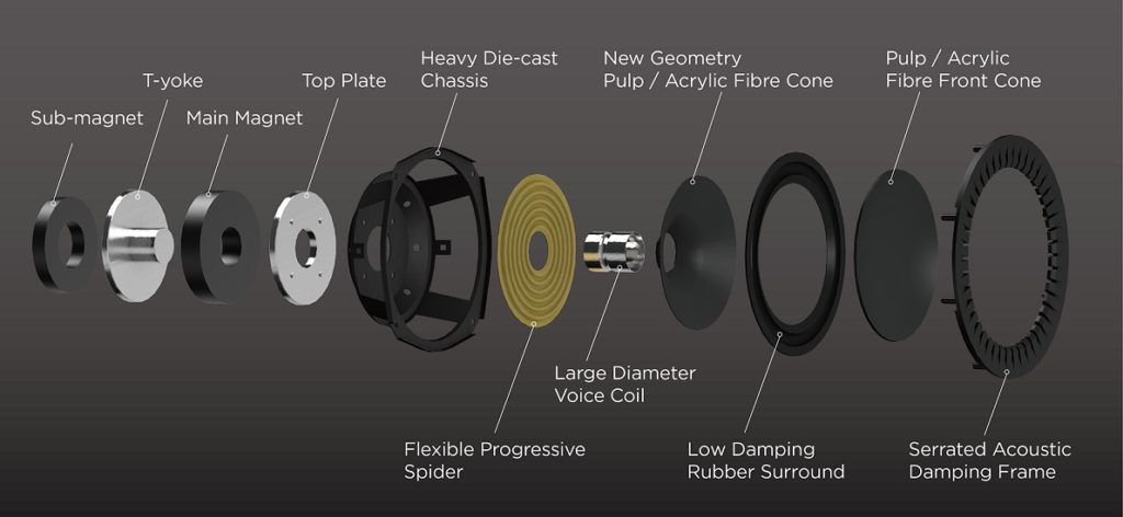 Τα γούφερ έχουν μεγάλο πηνίο φωνής, χυτοπρεσαριστό σασί και εξωτερικό κώνο (που είναι μια επιφάνεια) από χαρτί και ακρυλικό, ενώ ο κώνος κάτω από αυτόν είναι κανονικός κώνος για επιπλέον υποστήριξη. Το σύστημα αυτό η Mission το ονομάζει DiaDrive.
