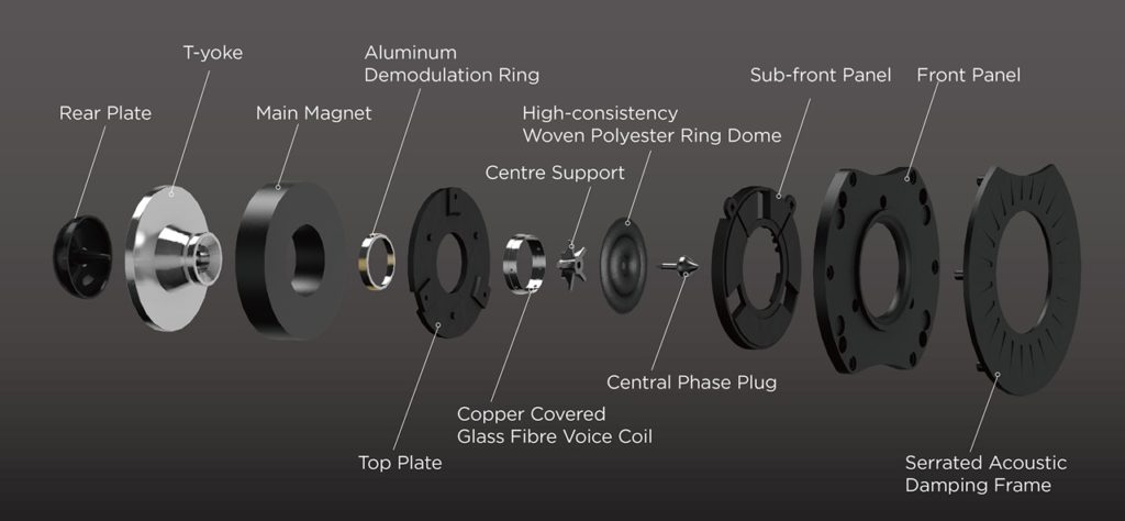 Υπάρχει και εδώ η κλασική σχεδίαση τοποθέτησης των μεγαφώνων της Mission, η γνωστή IDG (Inverted Driver Geometry), που θέλει το τουίτερ να βρίσκεται κάτω από το μιντ/γούφερ για καλύτερη χρονική ευθυγράμμιση σύμφωνα με τον κατασκευαστή.