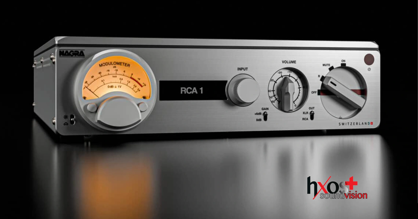 Στο εμπρός μέρος δεσπόζει ο θρυλικός Nagra Modulometer, εμπνευσμένος από το εμβληματικό reel‑to‑reel Nagra IV‑S. Το αναλογικό αυτό όργανο επιτρέπει τον οπτικό έλεγχο στάθμης των δύο καναλιών, διατηρώντας παράλληλα το αναγνωρίσιμο ύφος της Nagra.