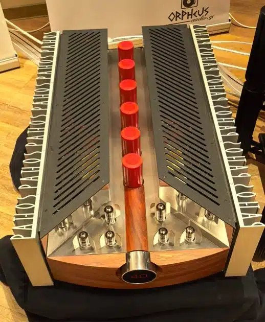 Όλες οι απαραίτητες συνδέσεις έγιναν με καλώδια Nordost. Οι 6 λυχνίες του ενισχυτή θερμαίνοται και είναι σε πλήρη θέαση, μπροστά. Σε κάθε πλευρά του ενισχυτή υπάρχουν αμέτρητες μεγάλες ψύκτρες που “γράφουν” στο επάνω μέρος της τη λέξη “Pathos”. Έξι φορές ανά πλευρά.
