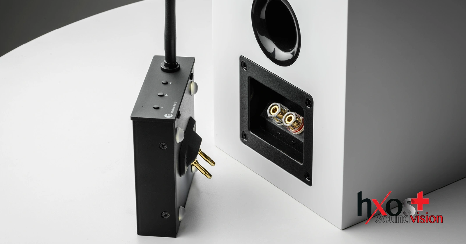 Το Wireless Box E δεν είναι ένα πλαστικό κουτάκι που κρύβεται πίσω από το ηχείο με ντροπή. Διαθέτει αλουμινένιο πρόσθιο πάνελ και μεταλλικό σώμα, με επίχρυσες banana plugs υψηλής ποιότητας. Η σύνδεση γίνεται απευθείας στους ακροδέκτες των ηχείων Pro-Ject, ενώ για ηχεία άλλων κατασκευαστών διατίθεται ξεχωριστά το Connect it LS-E Flex (0,3m extension cable, σετ για ζεύγος, 29,90€).