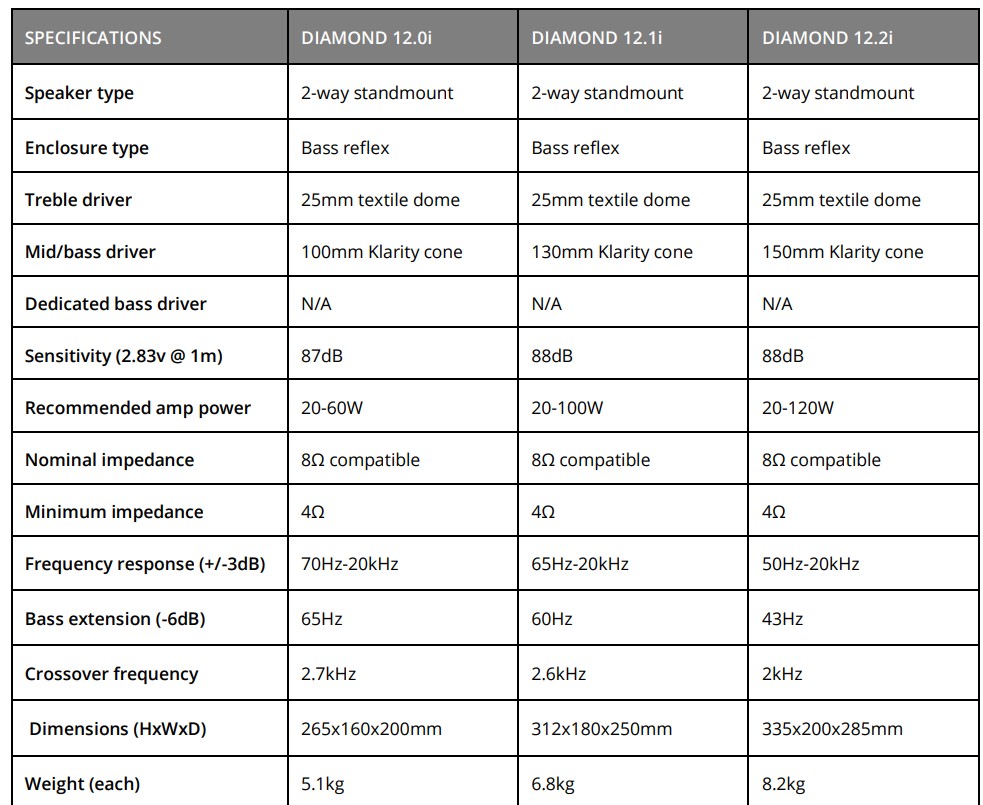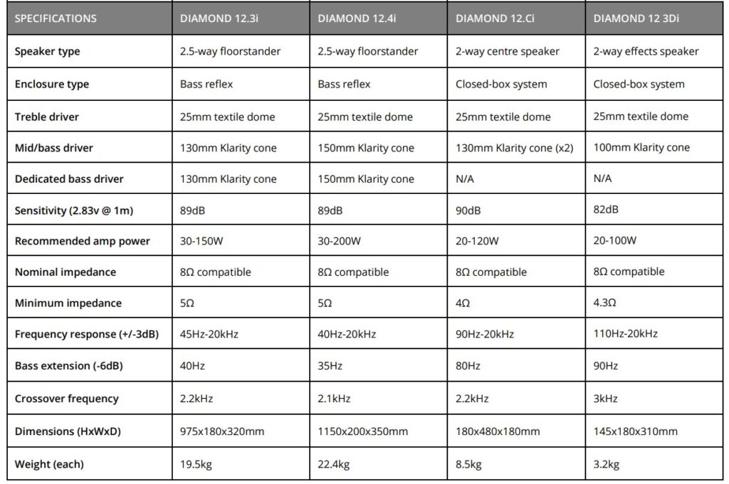 Diamond 12.2i – £299 το ζεύγος, βάσης