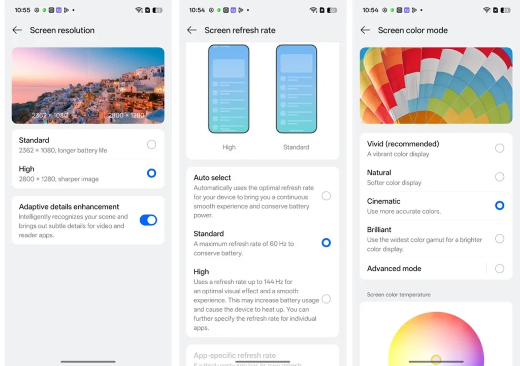 Στις ρυθμίσεις οθόνης η λειτουργία Adaptive Details Enhancement ενισχύει τις λεπτομέρειες της εικόνας, κάνοντας τα HDR highlights ακόμη πιο εντυπωσιακά.