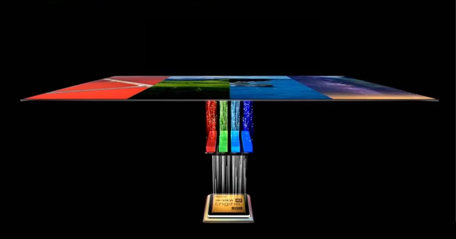 Η πρώτη μεγάλη παρουσίαση της Hisense ήταν μια LCD τηλεόραση με RGB Μini LED οπίσθιο φωτισμό που περιλαμβάνει και κυανά LED. Δηλαδή μιας γαλαζοπράσινης απόχρωσης, παρόμοια με το τιρκουάζ.