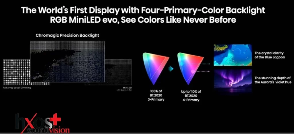 Η νέα ναυαρχίδα εισάγει ένα multi‑primary color system, προσθέτοντας το cyan (κυανό) στα κλασικά RGB. Το αποτέλεσμα είναι βαθύτερη χρωματική ακρίβεια σε επίπεδο μήκους κύματος και μια εικόνα που αποδίδει: πιο φυσικές μεταβάσεις, πιο ομαλές σκιές, πιο καθαρά highlights και μεγαλύτερη αίσθηση βάθους χωρίς υπερκορεσμό.