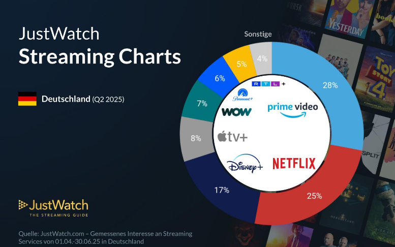 Η γερμανική αγορά SVOD (Streaming Video on Demand) στο δεύτερο τρίμηνο του 2025 παραμένει δυναμική και έντονα ανταγωνιστική, σύμφωνα με την τελευταία ανάλυση της JustWatch, που βασίζεται στη συμπεριφορά πάνω από 3 εκατομμυρίων ενεργών χρηστών.